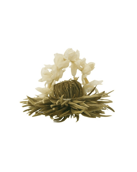 Desperte a magia do inverno com a Nuvem de Prata, uma flor de Chá Branco que se abre delicadamente em contacto com a água quente, revelando um espetáculo visual fascinante e libertando um aroma suave, floral e envolvente.